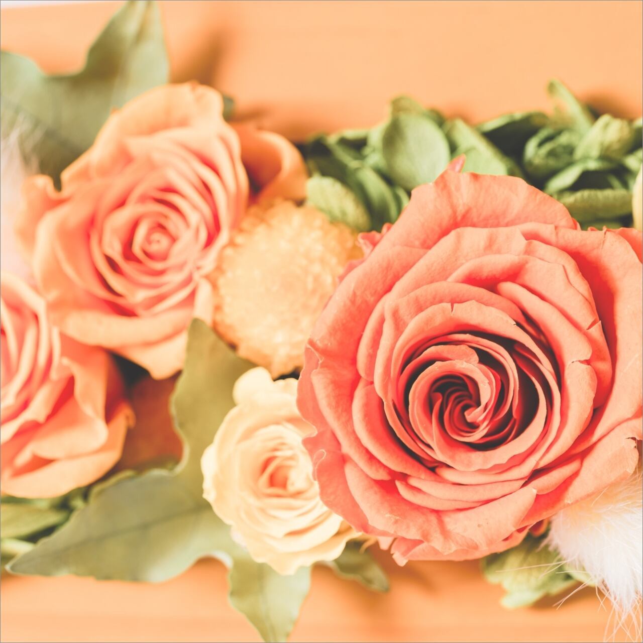 オリジナルプリザーブドフラワーフォトフレーム黄色・オレンジ系